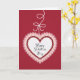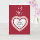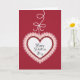 This "Lace Heart Valentine's Day Card" is a nice way to let that special person know how much you love them. Featuring a wine colour embossed floral background with a layered lace heart and hanging string with Happy Valentine's Day text centre of the heart. Inside message and signature is also include. This elegant red and white greeting card is super easy to personalise with your desired cover title, inside message and name info.