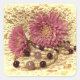 These charming stickers have an old-fashioned, vintage feel to them. Magenta pink mums and white pearls with purple stones are set on lace against a pale yellow background. The lighter vignette at the corners adds a dramatic feel.