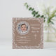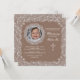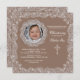 This milk-chocolate background invitation has a dainty white, lace border and a lace photo window. Featured here as a christening invitation, it is well-suited for most occasions. The cross can be dragged to any location, made larger or smaller or eliminated.