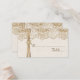 Elegant white lace, ribbon and flower on burlap wedding seating place card featuring white lace on linen natural burlap or hessian with two crossed satin ribbons and flower in beige with metallic shine and a white jewel. Text in brown. Note that lace, burlap, flower and jewel are all “printed on” and not real fabric, gem or crystal. This elegant, sophisticated and romantic design with a rustic essence is part of a wedding set and is perfect for a country chic or western spring, summer or fall/autumn wedding with a neutral colour palette.