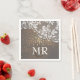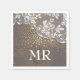 rustic country wedding paper napkins with lace and wood and gold confetti dots