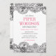 Delicate lace borders create a modern and pretty lingerie shower invitation. Colours are pink and black.