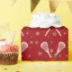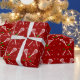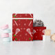 Lacrosse Christmas gift wrapping paper. Design of crossed lacrosse sticks and poinsettia with snowflakes on red background. Festive lacrosse themed holiday wrapping paper.