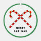 Creative lacrosse Christmas ornament holiday gift featuring the original "Merry Lax-mas" line for your favourite lacrosse player, coach or team sports fan. To personalise edit text to add name.