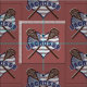 A patriotic red, white and blue patter with a heart and flag.