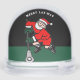 Creative lacrosse snow globe featuring unique Santa with a lax stick for lacrosse player, coach or team sports fan. To personalize edit text to add name.