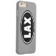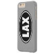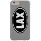Classic lacrosse oval design with the word LAX. Lacrosse iPhone 6 case. Lax black oval design phone cover.