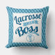 Lacrosse Like A Boss throw pillow. Blue gingham background. Available in 16" x 16" or 20" x 20" sizes, and in cotton or polyester. Use the 'size' menu on the right hand side of the screen to change pillows.