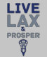 Big text design in blue tones with a Lacrosse stick and ball and the text Live LAX and Prosper.