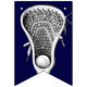 Cool lacrosse team party or sports event decoration featuring lax mesh and stick illustration on navy blue background.