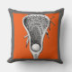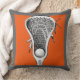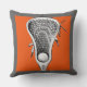 Lacrosse player or coach pillow featuring lax stick-and-ball design on orange background.