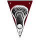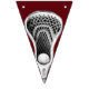 Cool lacrosse themed bunting party or event banner featuring lax stick and ball illustration on a maroon background.