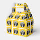 Unique lacrosse team party or event favour box featuring lax sticks pattern on a yellow background.