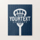 Lacrosse Player CUSTOM TEXT Team Mesh Sport Stick Jigsaw Puzzle