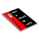 Lacrosse themed notebook featuring motivational quote and lax stick illustration on red background. To personalize, add name.