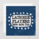 "Lacrosse Players Have More Fun" is a cute text design with a white accent shape surrounded by white whimsical dots.