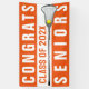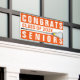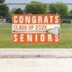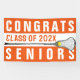 Women's lacrosse design and congrats line featuring a girl's lax stick and ball illustration on an orange background. Edit text to customize for your lacrosse party, team event, game day or school senior night.