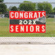 Lacrosse team banner featuring congrats and lax stick design on a red background. Edit text to customise for your lacrosse senior night, team party sports event or game day banner.