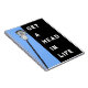 Creative lacrosse quote and lax stick graphic on light blue notebook. To personalise, add name.