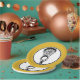 Unique lacrosse team party or event plates featuring lax stick on gold background. Add text to personalise for game day, senior night or other team event.