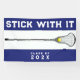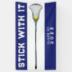 Creative girls lacrosse team banner featuring encouraging quote and lax stick design on blue background. Edit text to add graduation year.