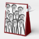 Creative lacrosse party favour boxes featuring lax sticks design and team quote on maroon background.
