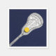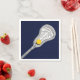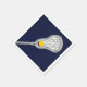 Creative lacrosse party or girls team sports event napkins featuring lax stick and ball on field of navy blue.