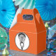 Cool lacrosse party or team event favour box featuring lax stick design on an orange background for birthday party, team event and sports gifts.