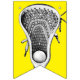 Cool lacrosse team party or event decoration featuring lax mesh and stick illustration on yellow background.