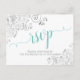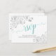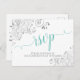 Lacy Aqua Calligraphy on White Wedding RSVP Postcard