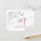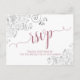These beautiful RSVP postcards will make it easy for your guests to respond to your wedding invitation. They feature an elegant design with a white background and dusty rose or mauve lacy script calligraphy and pretty floral silver faux foil curls and swirls in the corners. The back is a form for your guests to fill out and return indicating the number attending and their choice of meals. There is space to enter a website so your guests can respond online if they prefer. Classy and sophisticated, these RSVP cards are a wonderful addition to your invitation suite.