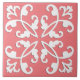 Lacy cutwork - white over azalea pink ceramic tile