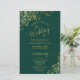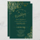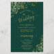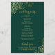 These wedding programs are elegant and tasteful, while still being budget friendly. The design features ornate golden faux foil frills with gold text on an emerald green colored background. The typography features lacy script calligraphy, and there is room for details on the ceremony, the bridal party, and a short thank you.