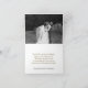 This beautiful card is the perfect way to thank your wedding guests for being a part of your special day. The front features a navy blue background with gold script reading "thank you" with frilly gold faux foil filigree in the corners. Inside is a place for you to upload your wedding photo as well as a short note and signature. Beautiful ending to a new beginning.