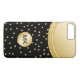 Here is a classy ladies smartphone monogram case printed in gold and black with gold simulated digitally printed design elements that add a touch of class to your cellphone. Created for ladies or girls who like to put their name letters on their things.