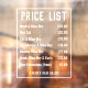 Ladies hair salon Price list as a window cling.