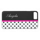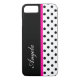 Custom monogram smartphone cases with chic black and white polka dots pattern and pink fashion stripe you can customise, and name drop space you can make your own by replacing the template name with yours or adding your monogram initials. Lets you carry your cellphone in your own personal style.