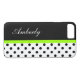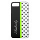Custom monogram smartphone cases with chic black and white polka dots pattern and bright green fashion stripe you can customise, along with name drop space you can make your own by replacing the template name with your own monogram initials. Lets you carry your cellphone in style.