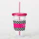 Personalise for yourself or a race fan, a black and white chequered printed carry travel cup, great to take on road trips, to the speedway, or on road trips. The white with in the chequered print can be switched to any colour. The text is also removable. Several colour choices to choose from.