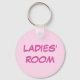 Ladies' room keychain with a dark pink text on a pink background. Matching Men's room keychain is available.