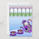Beautiful invitation for get-togethers with "The Girls": Tea Party, Quilting Bee, Book Club, birthday or celebrating Madge's divorce! Original digital painting by Leslie Sigal Javorek of stained glass window & violet floral tea set w/ updated Art Nouveau feel. On back, customisable text fields for party details or clear default text to fill in by hand.