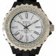 Lady skier watch. A female winner downhill ski watch that is designed as an award for the female Winner of a women's downhill skiing competition. Add the name of the recipient as well as the competition. Roman numerals on a white background.