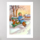 Lady and squirrel vintage art poster