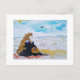Lady at the beach postcard