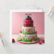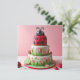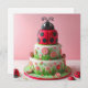 CUTE RED AND BLACK LADY BUG ON A BIRTHDAY LAYER CAKE ON THE FRONT OF THE CARD. COMPLETELY EDITABLE COPY ON THE BACK.