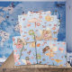 A watercolor painted children's wrapping paper sheets in soft pastel coloured backgrounds. This one features a winged fairies garden with flying fairies, gnomes, toads, snails, mushrooms, lady bugs and butterflies.