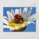 Seven spots ladybug (Coccinella septempunctata) on the heart of daisy flower on the blue sky background