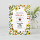 A birthday party invitation featuring a border of greenery dotted with ladybugs and black eyed susans. Personalise the text.