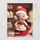 Customise text if you want or just keep this. Yarn and friends - the perfect combination! Greetings from friends and coworkers. Cute crocheted lady with red hat. Red and red dress.. Cookies and cakes on shelves, strawberry or apple in hand.
