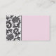 Beautiful pale pink accented with bold classic black and white damask pattern on front and back of card. Choose the font of your choice.